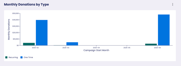 A side-by-side view of one-time vs recurring donations, grouped by the month the campaign started.