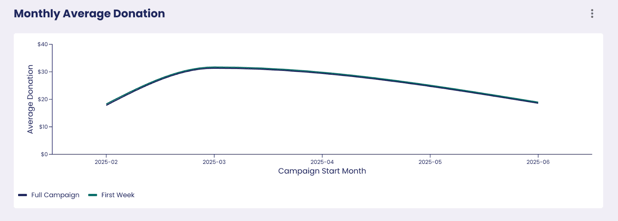 Full Campaign: Average donation amount for campaigns launched in a specific month, calculated over the entire campaign duration.