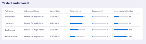 Note: Texters appear in multiple rows if they participated in more than one subaccount.