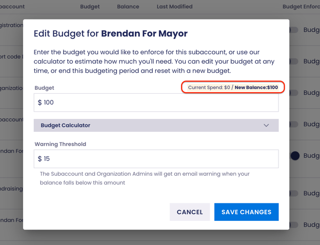 Once you’ve edited the budget, click Save Changes.