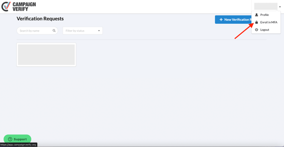 1. Log in to your Campaign Verify account, click on your name in the upper right corner and select Enroll in MFA.
