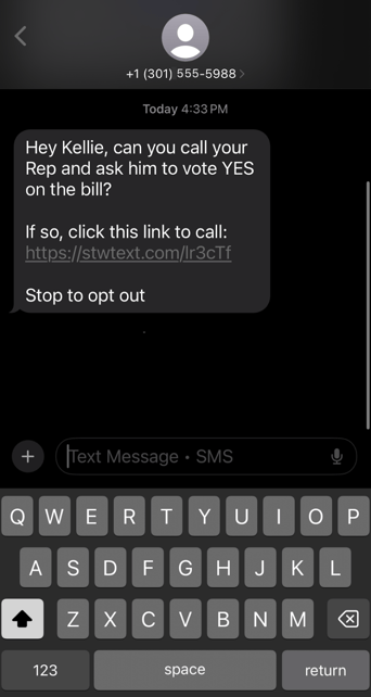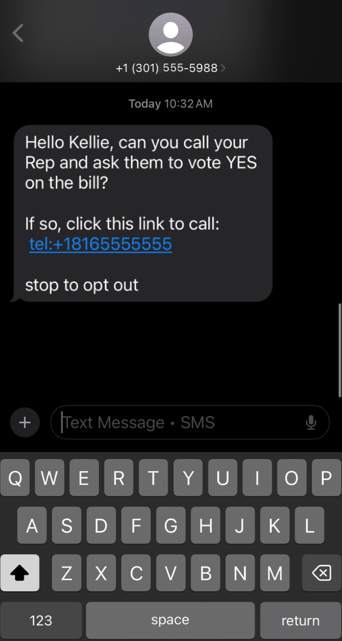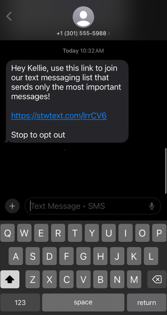 Organizations can send a Click-To-Text link to their contacts from a 10DLC or Toll-Free number. When a contact clicks this link, their messaging application will automatically open, pre-filled with the necessary keyword for the Short Code. The contact simply needs to press "send" to opt-in to the organization's messaging program via the Short Code (or other defined opt-in method).
