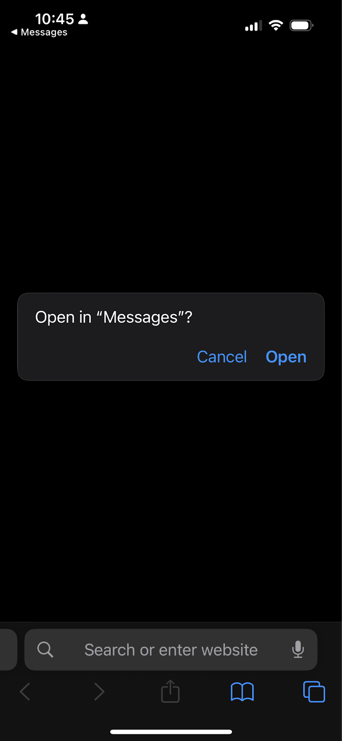 Note: If you use link shortening, some phones may ask for permission before redirecting to the text message. It may be worth A/B testing with and without link shortening to confirm whether the shortlink reduces conversion. Here’s an example on an iPhone: