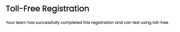 Image above: Screenshot of the message shown on the Compliance page when toll-free registration has been completed successfully.