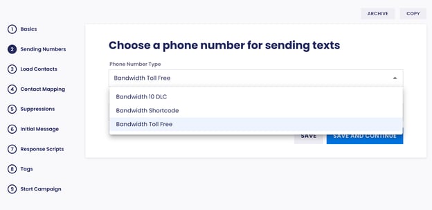 Image above: Text campaigns will let you access toll-free as soon as your registration is approved.
