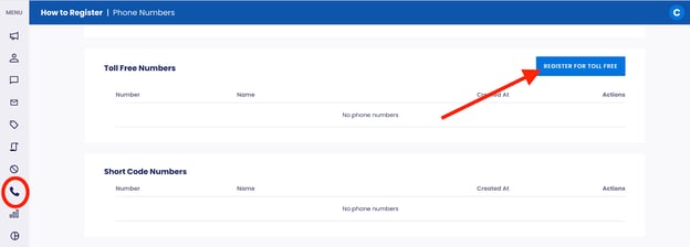 Go to the "Phone Numbers" page. Click on "Register for Toll-Free" to access the form.