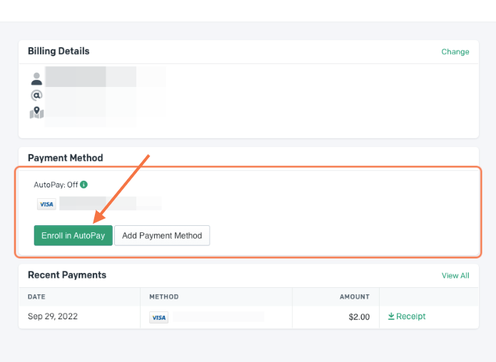 Enroll in automatic payment by clicking on Enroll in AutoPay.