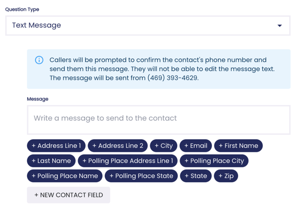 Callers can utilize the Text Message Question Type feature to send a volunteer a sign up link for an event, more information about your campaign or organization, or a link with information about their ballot.