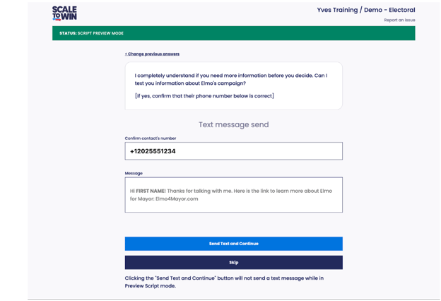 Registering a texting number for the dialer allows callers to send a prewritten text to the contact during calls.
