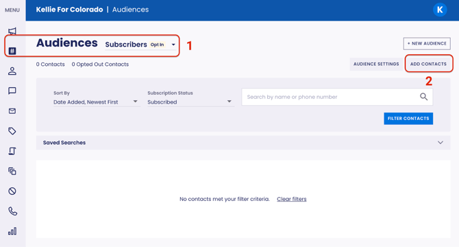Once the Scale to Win Team has imported your new opt-in number to your subaccount, you’ll be able to add contacts to your Subscriber Audience.