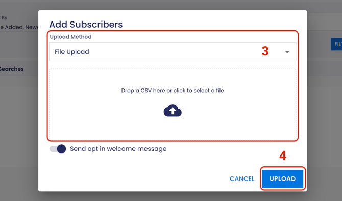 3. Select your upload method and upload contacts that have explicitly opted in.