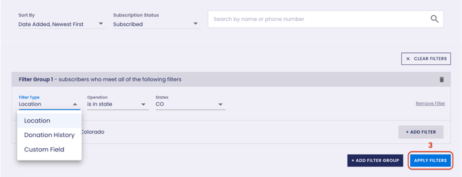 - Click Filter Contacts.