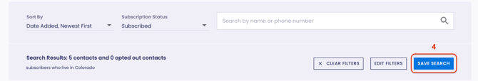 Note: Saved Searches are dynamic. This means every time you load a saved search, Scale to Win Text will show an up-to-date list of contacts that match your criteria.
