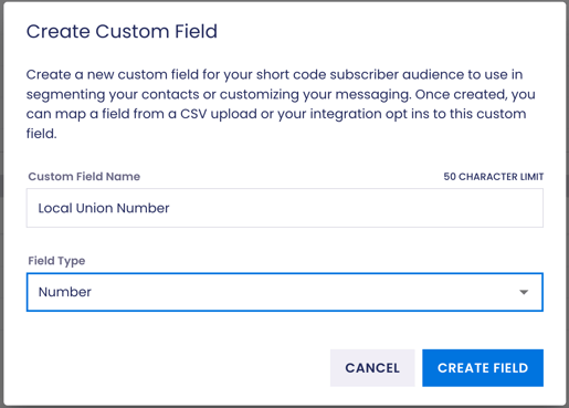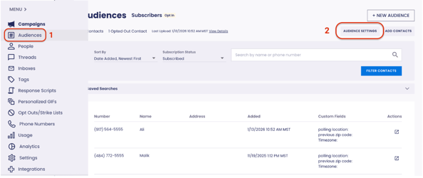 The Custom Fields Feature allows you to add custom contact fields to your Audiences. You can use custom fields as merge fields in your initial texts and response scripts when you have custom field values in your subscriber list.