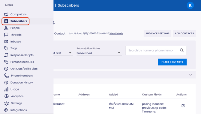 Once your Short Code is approved by the carriers, you’ll be able to set up keywords and manage subscribers from your Subscribers page.
