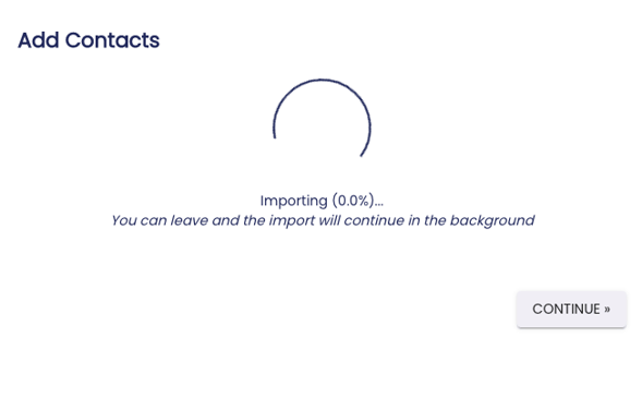 From there, click the “IMPORT CONTACTS” button. The system will then start importing your list: