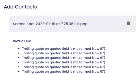 An example of an error message if you’ve attempted to upload a non-CSV file.