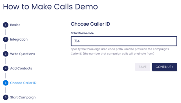 In this step, enter the three-digit area code that you want your calls to come from. We recommend that you choose an area code local to the people you’re calling, so that it is familiar to them and they are more likely to answer your call.